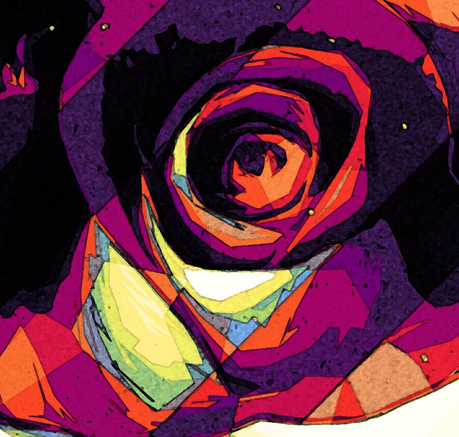 I got this rose in an arrangement on my birthday - photographed and abstracted it, using several digital tools.